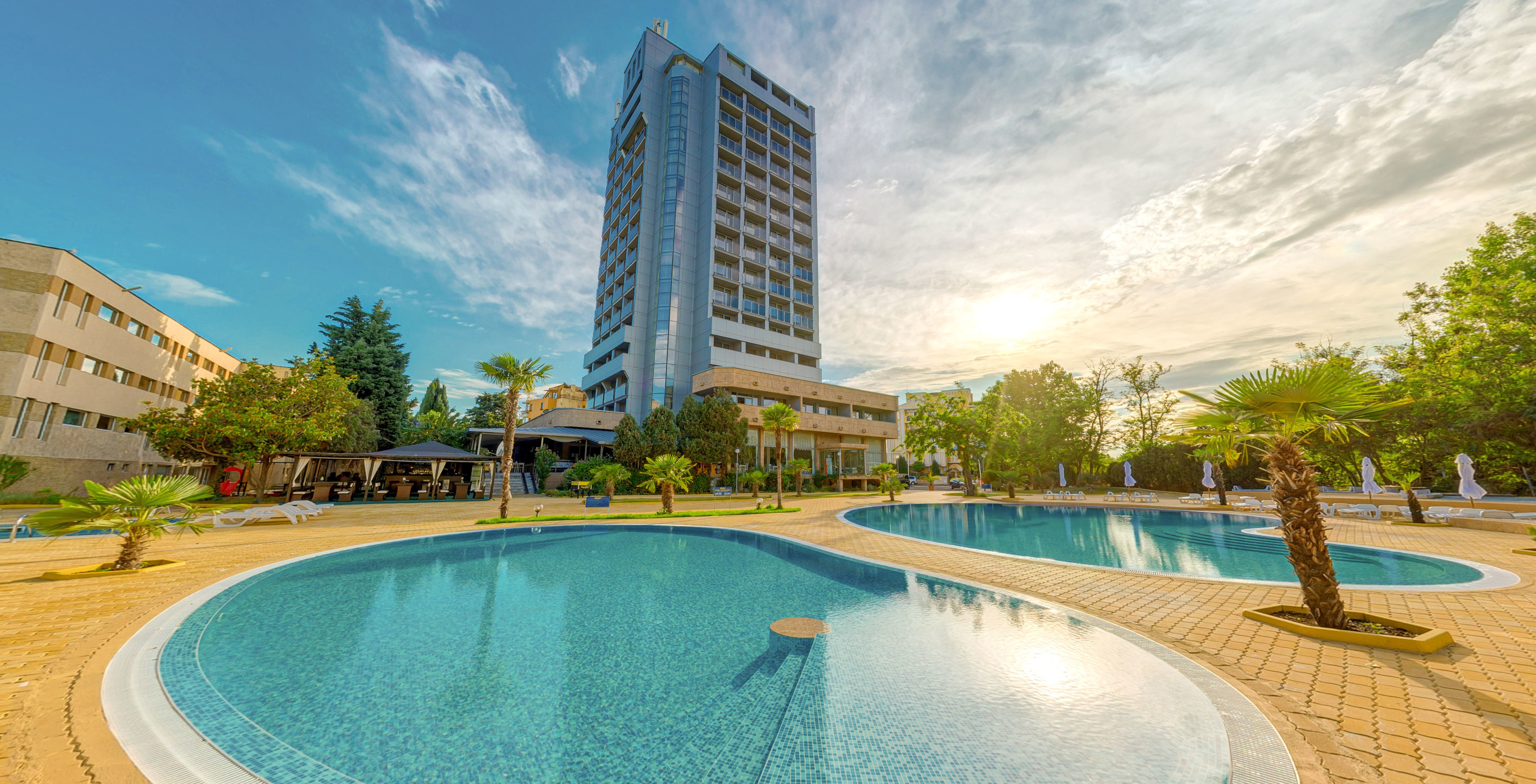 В хотела:рецепция,асансьори, ресторант ,лоби бар ,Sky Bar, бар с