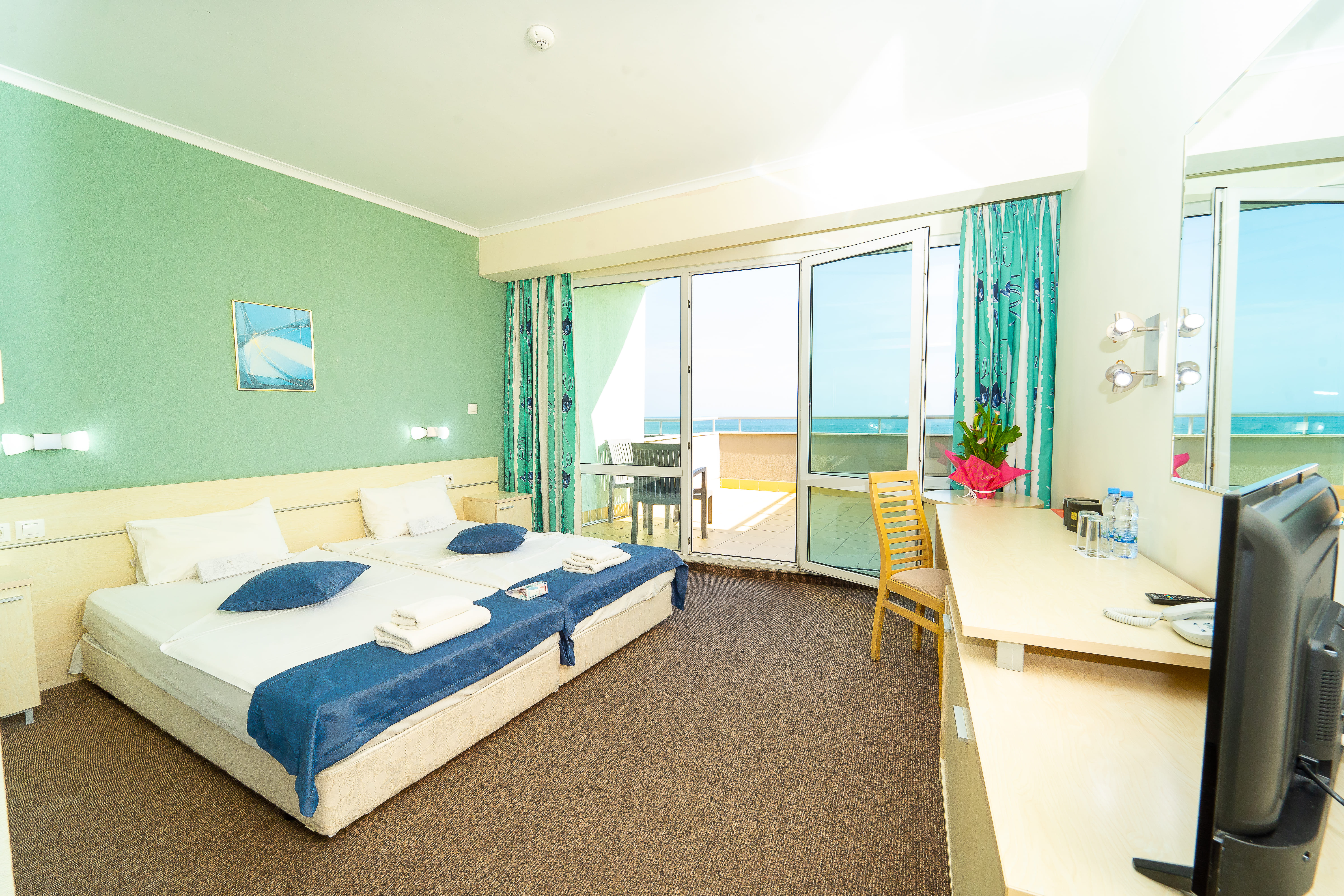 В стаите: климатик,телевизор, мини-хладилник, сейф, безплатен Wi-Fi, самостоятелна баня, сешоар и тоалетни принадлежности