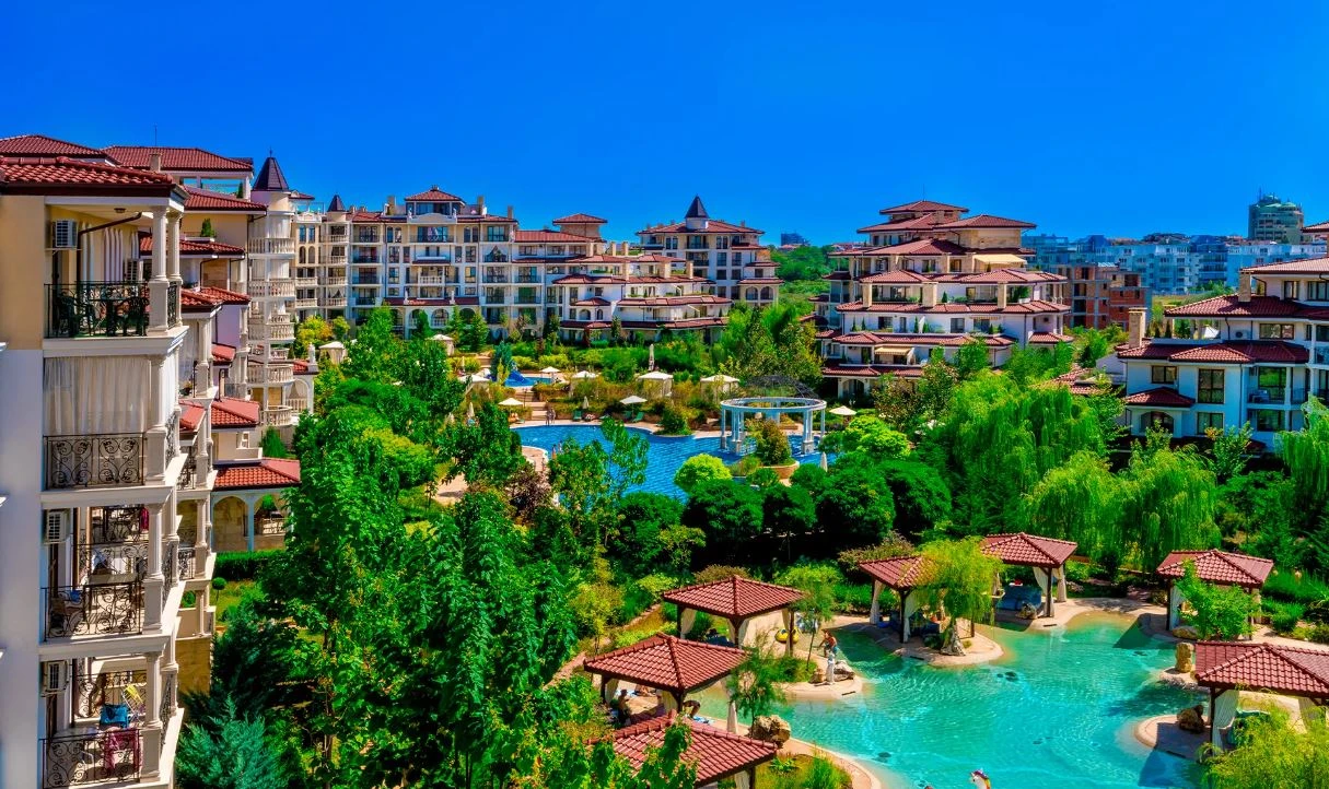 В комплекса: спа център, фризьорски салон, детски клуб, басейни, релакс зона, тенис корт, мини голф, детска площадка, ресторант, барбекю зона, паркинг, охрана 24/7